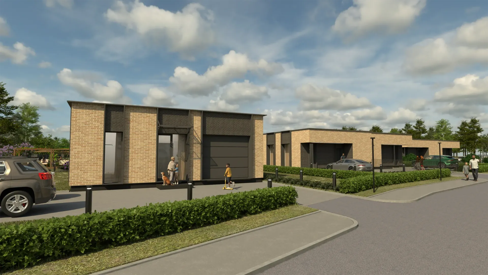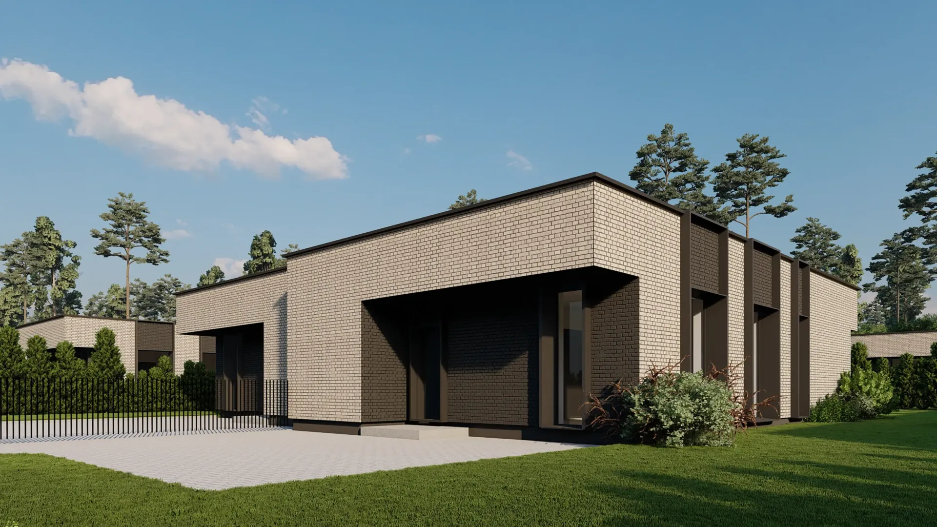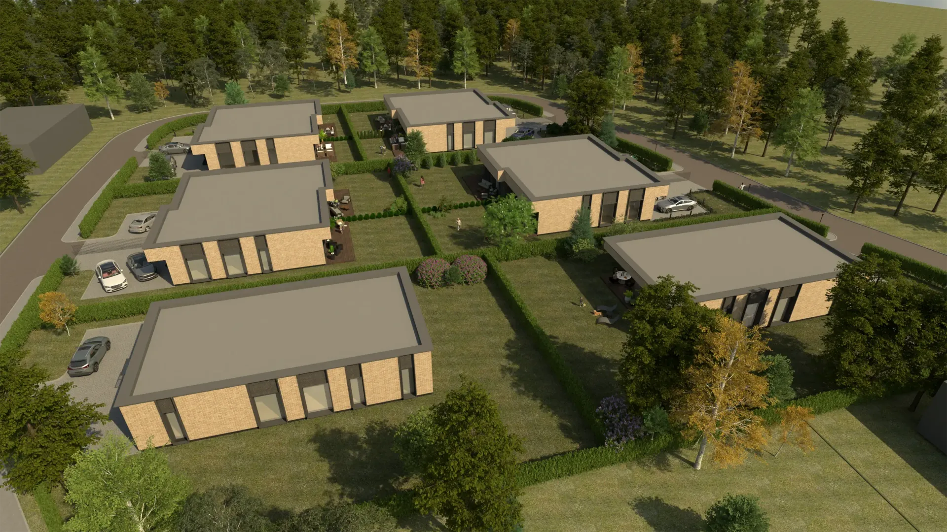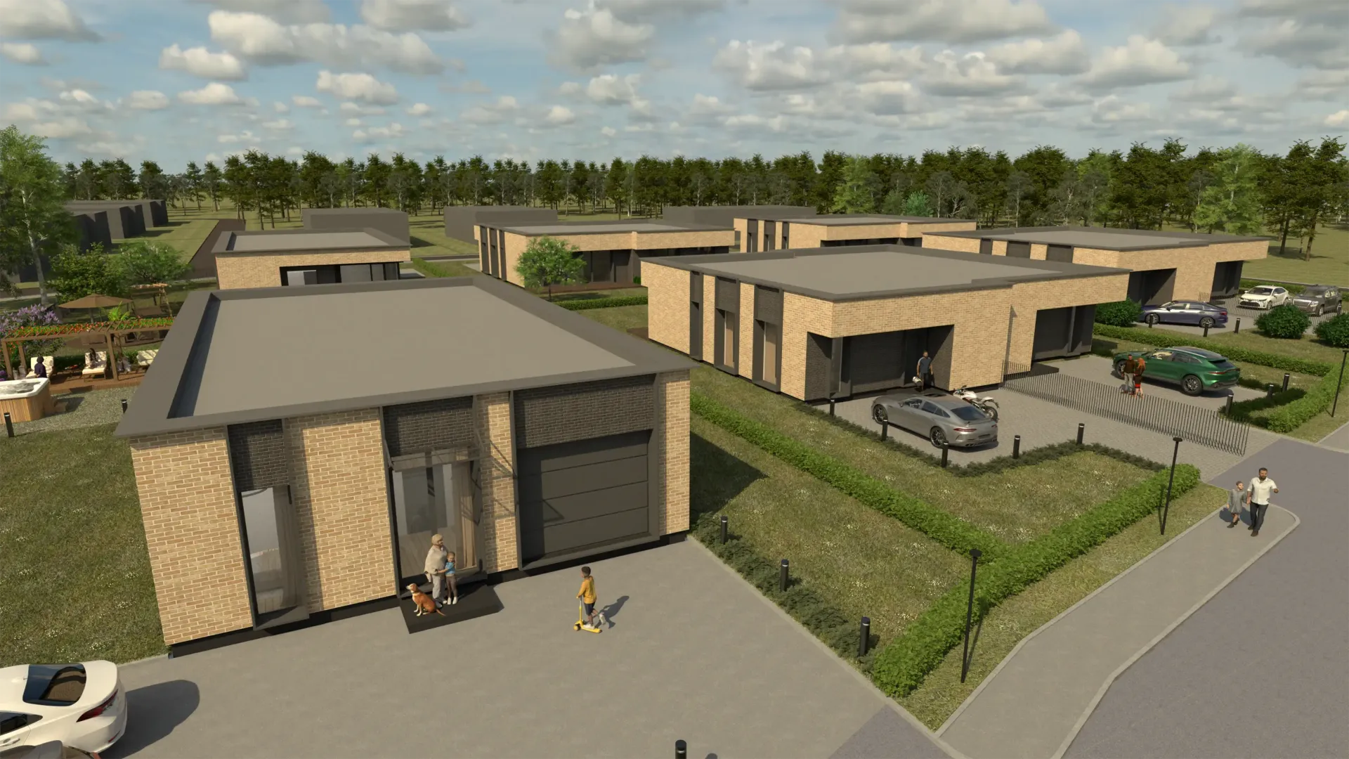 - Modernus sprendimas: visi namai vienaukščiai, orientuoti į komfortą, kokybę ir estetiką.