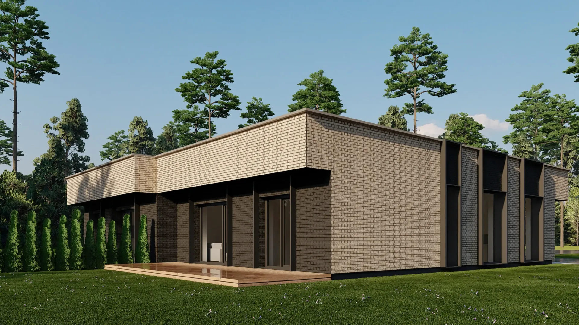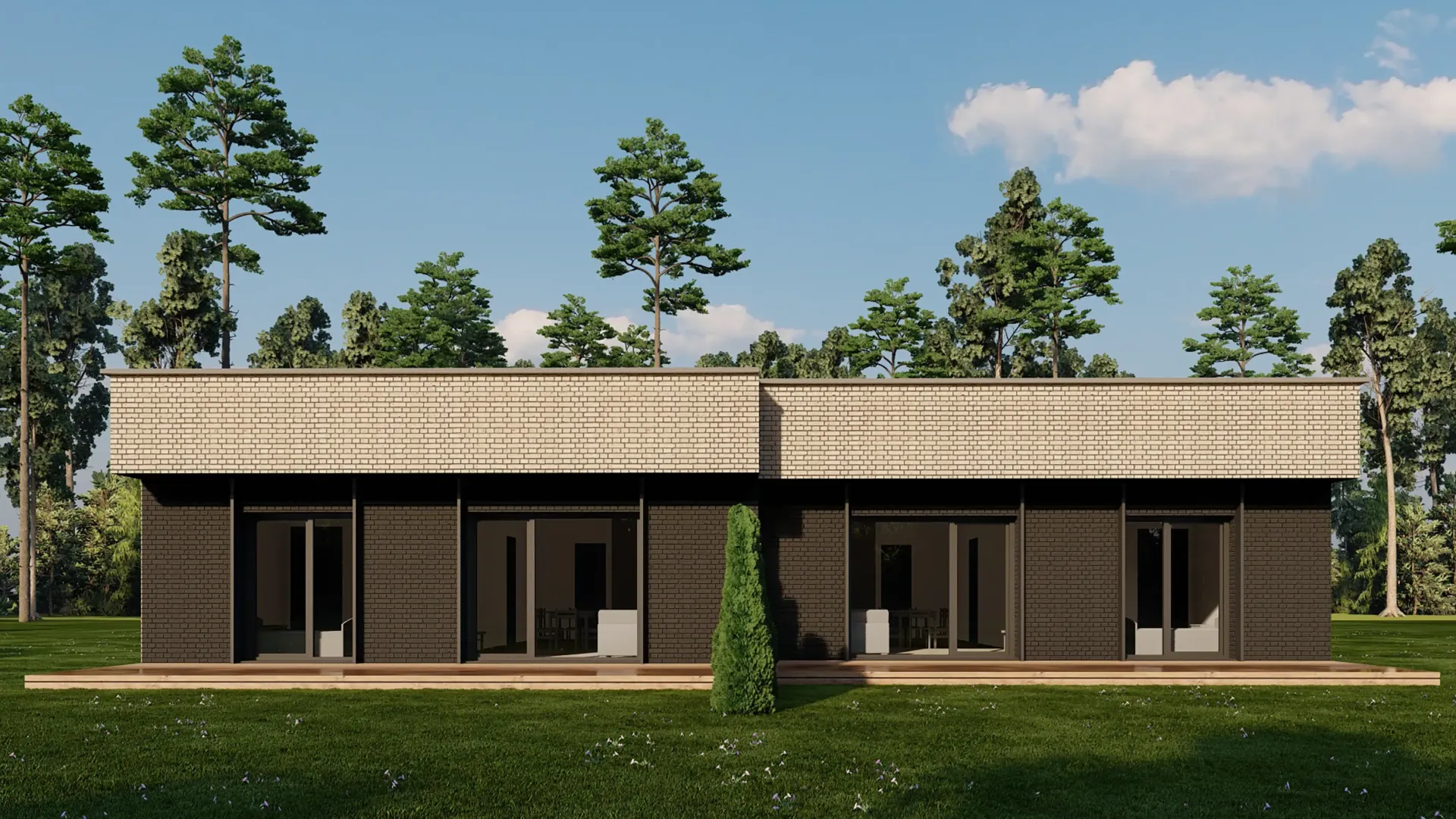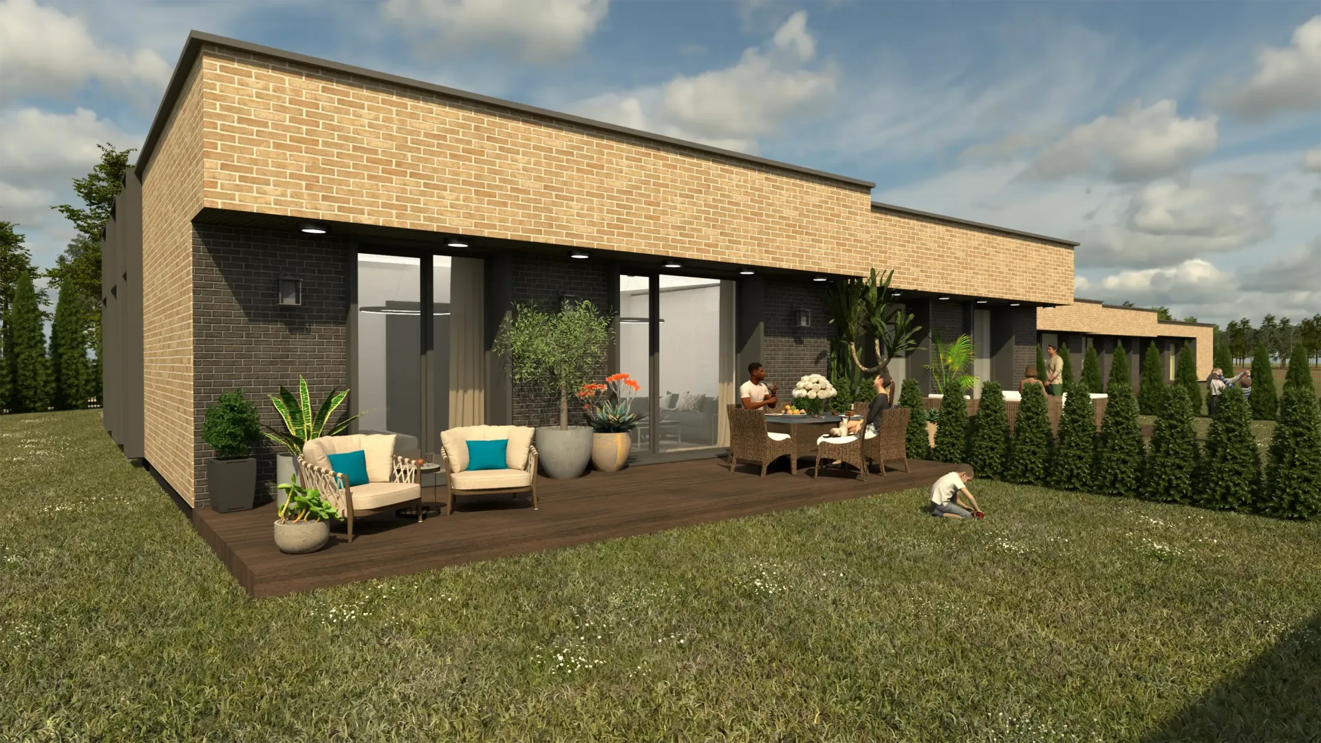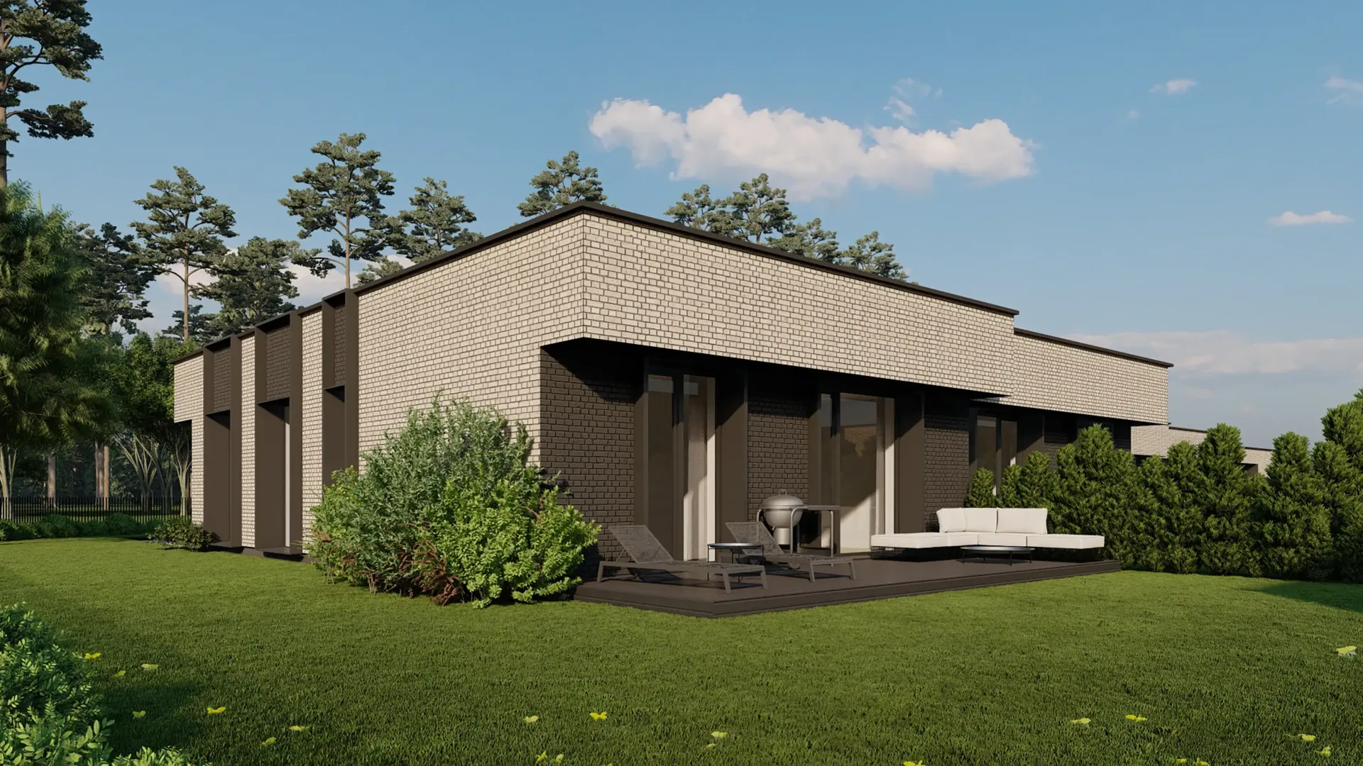 - Modernus sprendimas: visi namai vienaukščiai, orientuoti į komfortą, kokybę ir estetiką.